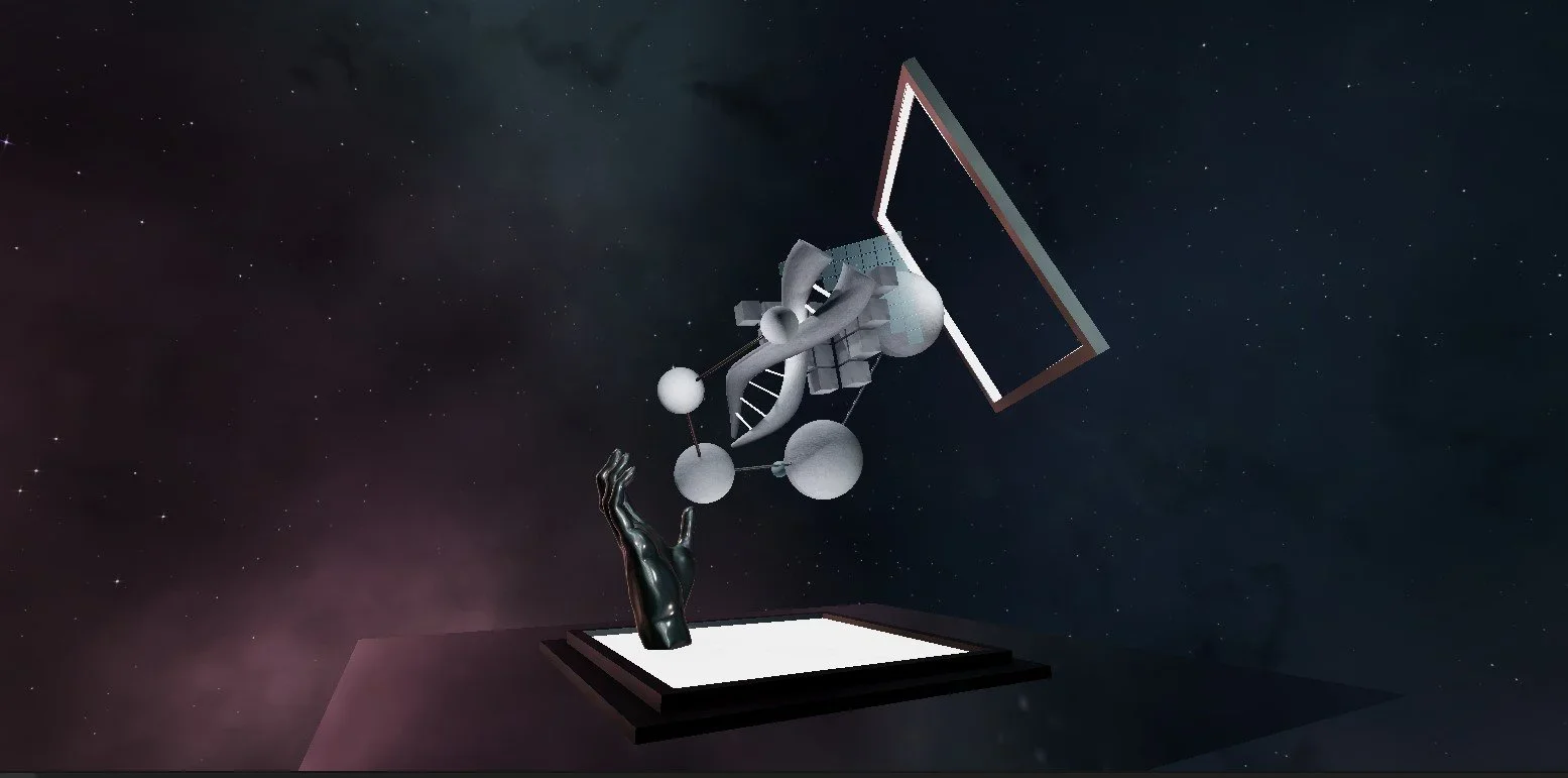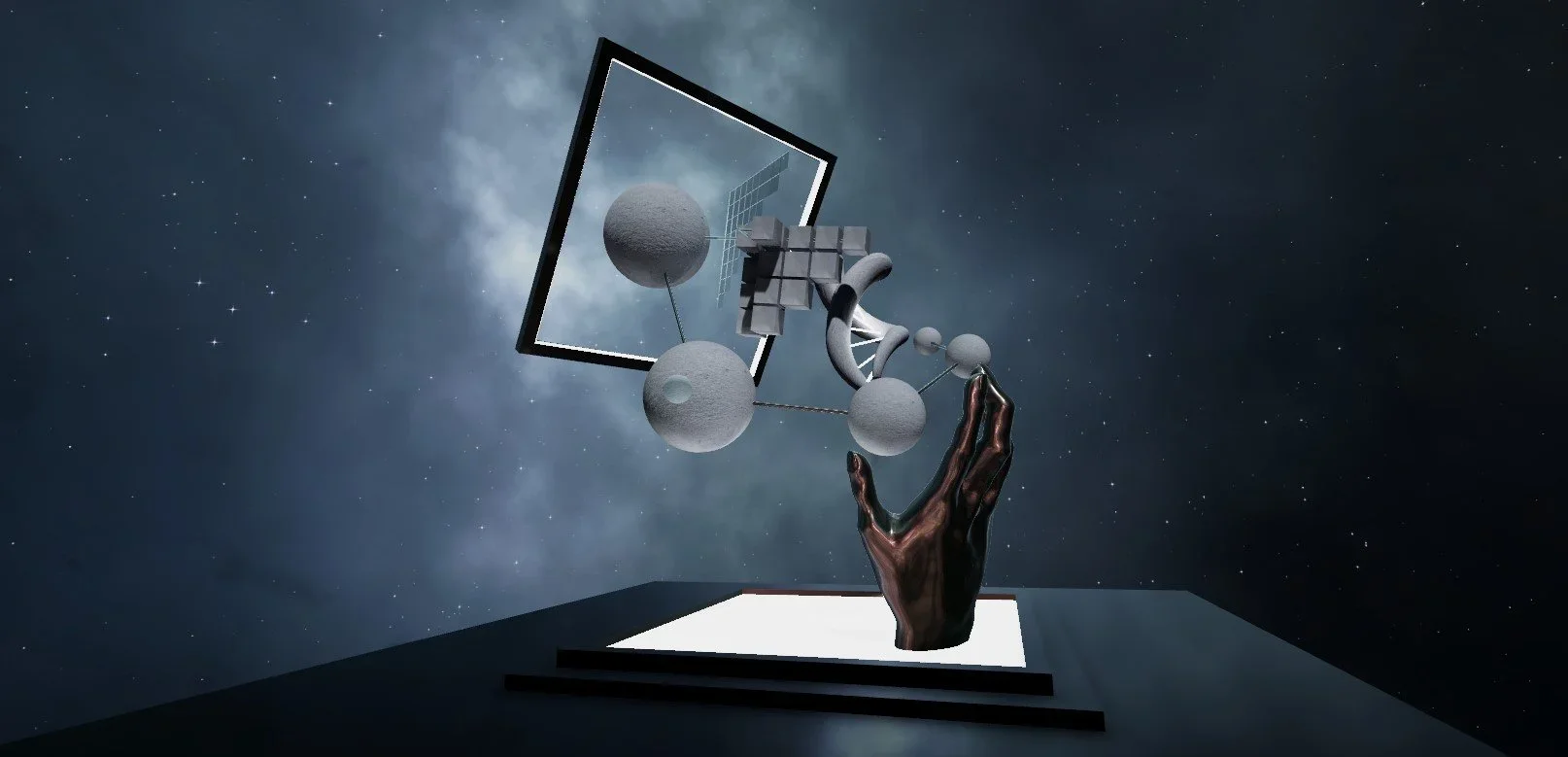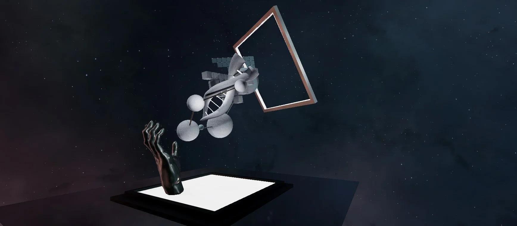 작가는 이러한 역사적 맥락을 차용해, 가상현실 속에서 자신의 머릿속 세계와 내면의 자아를 담아내는 캐비닛을 제안한다. The Cabinets of Wonder는 과거의 ‘경이의 방’이 세계의 단편들을 모아 보관했던 것처럼, 디지털 시대의 작가는 픽셀, 파동, DNA, 행성, 노이즈 같은 상징들을 통해 새로운 현실의 단편들을 수집하고 배열한다.